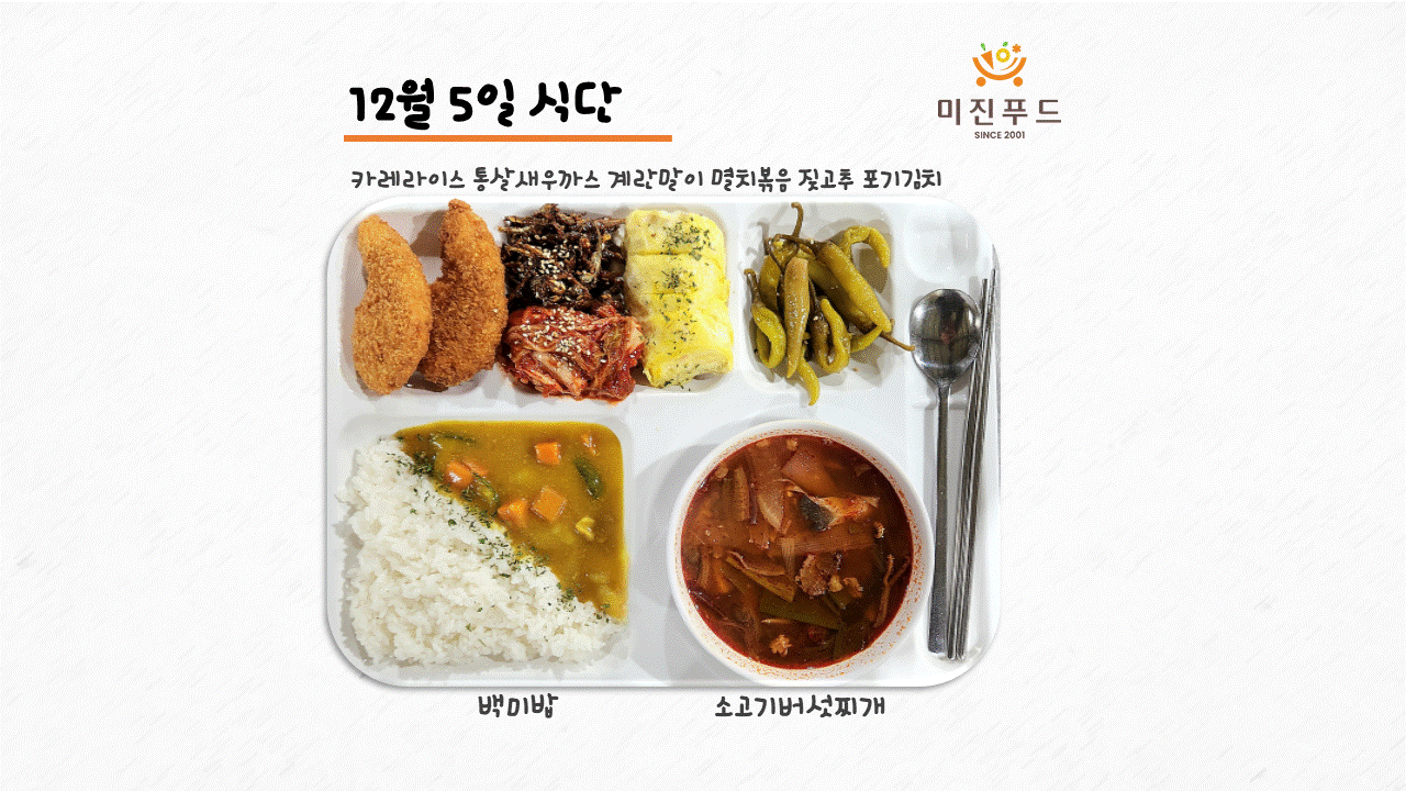 오늘의 식단: 카레라이스 통살새우까스 계란말이 멸치볶음 (배추나물 사진상x) 포기김치 소고기버섯찌개 백미밥 사랑합니다:)