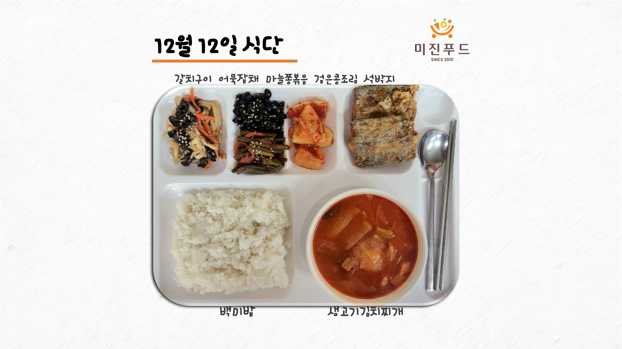 오늘의 식단: 갈치구이 어묵잡채 마늘쫑볶음 검은콩조림 석박지 생고기김치찌개 백미밥 사랑합니다:)
