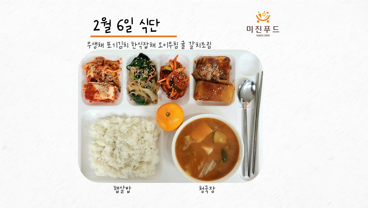 오늘의 식단: 햅쌀밥 청국장 갈치조림 한식잡채 오이무침 무생채 포기김치 귤 사랑합니다!:)