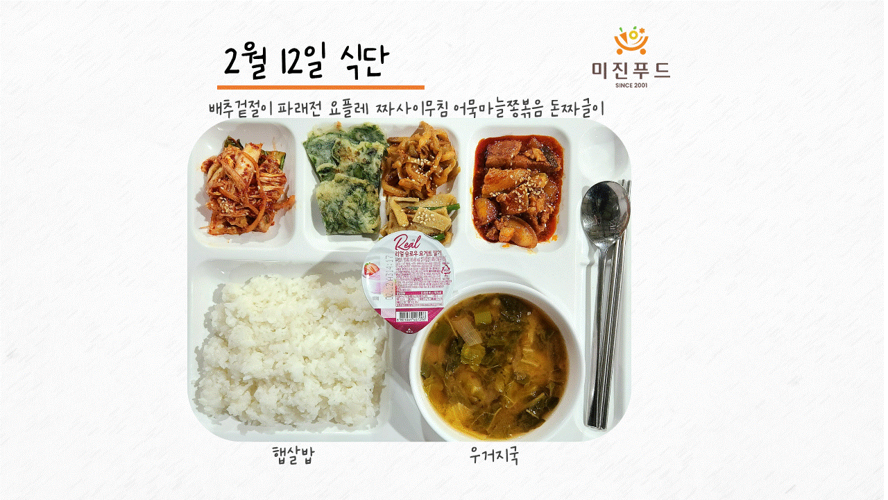 오늘의 식단: 햅쌀밥 우거지국 돈짜글이 파래전 어묵마늘쫑볶음 짜사이무침 배추겉절이 요플레 사랑합니다!:)