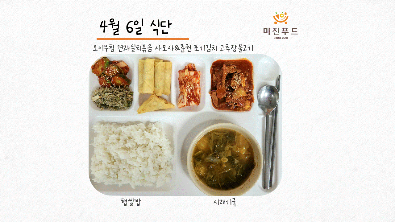 오늘의 식단: 햅쌀밥 시래기국 고추장불고기 사모사&춘권 오이무침 실치볶음 포기김치 사랑합니다!:)
